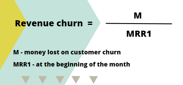 The same formula as well as for customer churn are relevant for revenue churn. But customer metrics are replaced with money metrics related to the customer's figures.