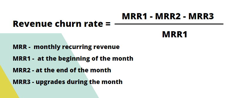 Revenue churn rate: MRR1 - MRR2 - MRR3 MRR1