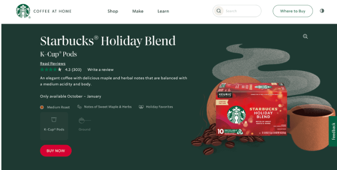 So, the customer doesn’t use these mobile apps to make the purchase. Instead, the customer goes straight to the Starbucks Coffee at Home site to buy what they need.