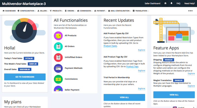 • Webkul Marketplace App is unstable according to user reviews and my own experience – their demo’s admin panel didn’t work.