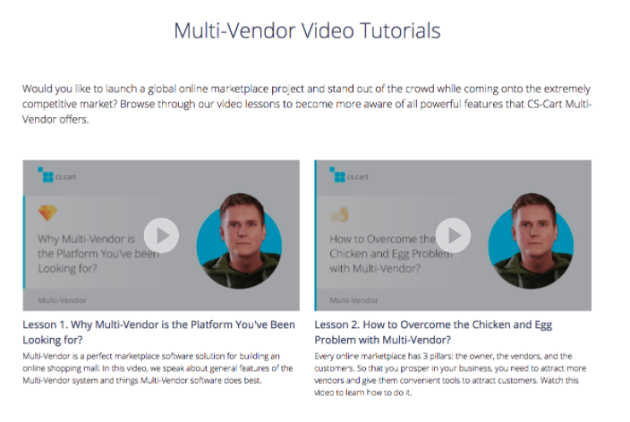 For you to get familiar with Multi-Vendor shopping mall software, we’ve prepared video tutorials. We have 60 video lessons for CS-Cart & Multi-Vendor and 10 extra video tutorials.
