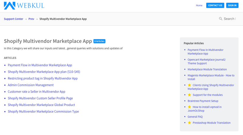 Speaking of Webkul, their instructions for multi-vendor shopify consist of 8 articles.