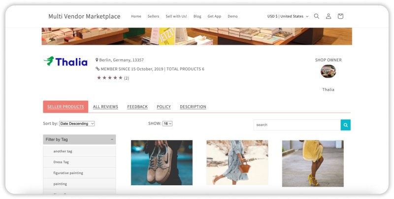 Summary: The Multi-Vendor Marketplace for Shopify is a side plugin. Users will have to set it up separately, which might be difficult for beginners with no technical skills. In simpler words, you need to configure a product inside the product. On the other hand, it delivers core features for starting a marketplace. The plugin brings a sellers’ management system, seller subscriptions, and an intuitive admin panel.