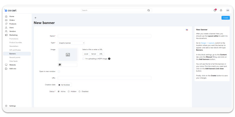 With a built-in CS-Cart Banner Management add-on, you can easily create and customize banners to highlight products, special offers, discounts, or product lists.
