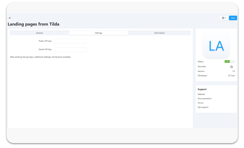 Important: To be able to connect your Tilda account to CS-Cart and pull landing pages from Tilda, you need Tilda’s Business plan.