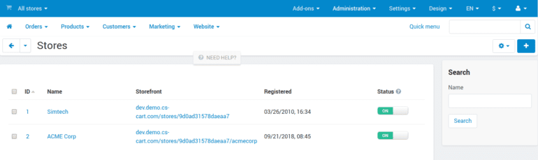 In CS-Cart 4.9.1 we have improved the list of storefronts (try it on our demo): now you clearly see which of the storefronts are open and closed; you can also open or close a storefront with one click. If you go to the editing page for each storefront, you’ll find out how to access the storefront even if it is closed.