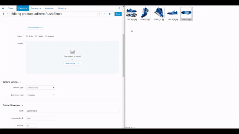 4. Drag & drop of product images has been introduced: you can now upload multiple images for a product at once simply by dragging and dropping them. Also, the main image and the additional images of a product are on the same tab now.
