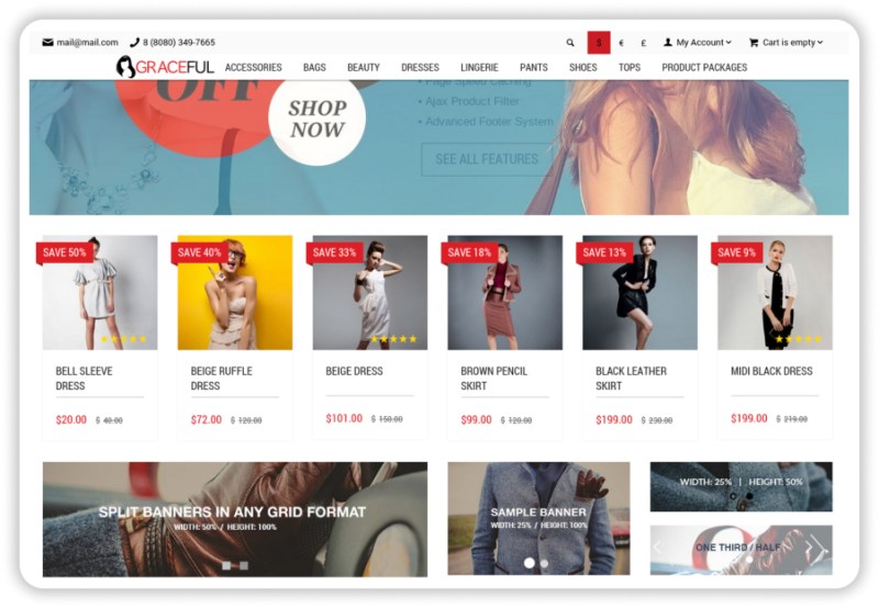 With this Animated blocks add-on, you can make your shop more interactive and dynamic. Users will appreciate animated elements on your website. Feel free to use it with different website elements, banners, product scrollers, and more.