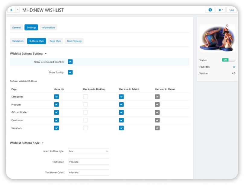 • Choose from various wish list formats, including button designs and list design, for a fully customized experience