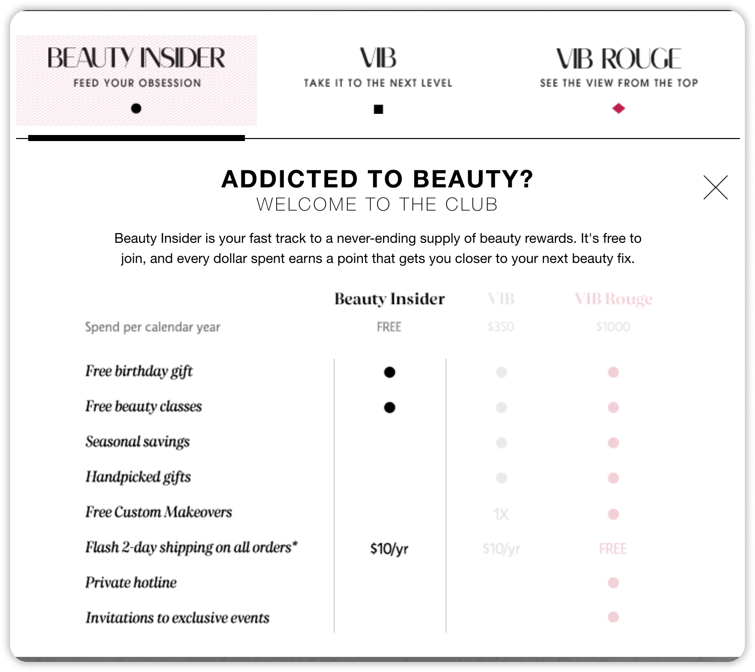 Thus, cosmetics brand Sephora launched the Beauty Insider program back in 2007, and in 2016 released the third level of access Rewards Bazaar—an exclusive inner store for members of the loyalty program. Customers were able to redeem shopping bonuses for limited edition cosmetics.
