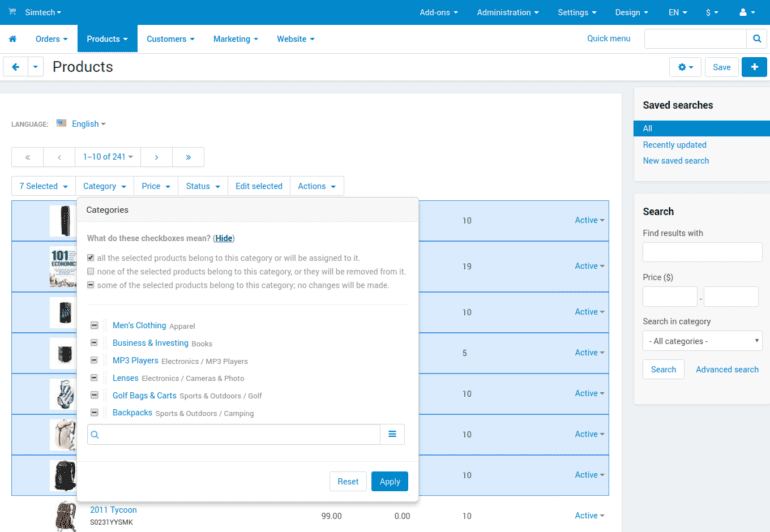 The list of products has been reworked. See for yourself how it works on our demo. The first thing you’ll notice is that checkboxes next to products are gone—just click anywhere on the product, and you’ll select it. Multiple products can be selected and unselected by holding the Shift button on your keyboard (just like you do it with files and folders on the desktop).