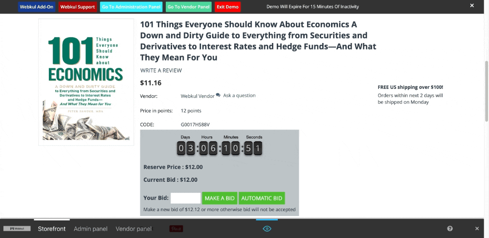 • Auction and Buy It Now: You can create a classic “Buy it now” marketplace or add auction features. This versatility lets you cater to a particular niche or a broad audience, much like eBay.